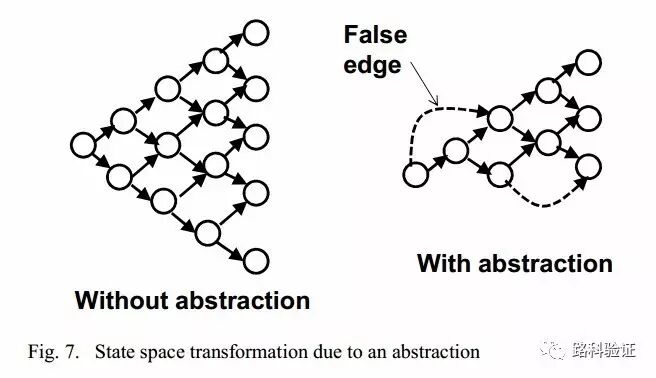 抽象模型用于减少设计的状态空间,这样就大大减少了向更深层次搜索所需的时间。可靠有效的抽象模型不但不会删除任何有效行为,还能为我们提供一些有意义的验证场景。通过向设计添加复位状态或状态转换,可以减少原始设计的状态空间深度,而且某一深度的行为会大大减少,这对快速验证是十分有帮助的。当然也存在假故障(假的bug,来自抽象模型而不是真正的设计bug)的可能性,但是这样的故障都可追踪的,可以用以调试,然后确定它是DUT错误还是由于我们过度抽象造成的。
