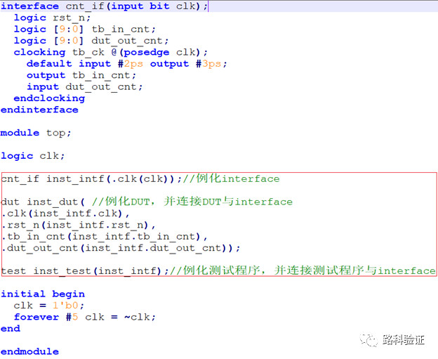 - interface中可以使用时钟块来指定一些同步信号相对于时钟的时序,使得我们可以在TB中使用和DUT相同的时钟来进行同步的驱动和采样。可以很大程度上避免DUT和TB的竞争状态。