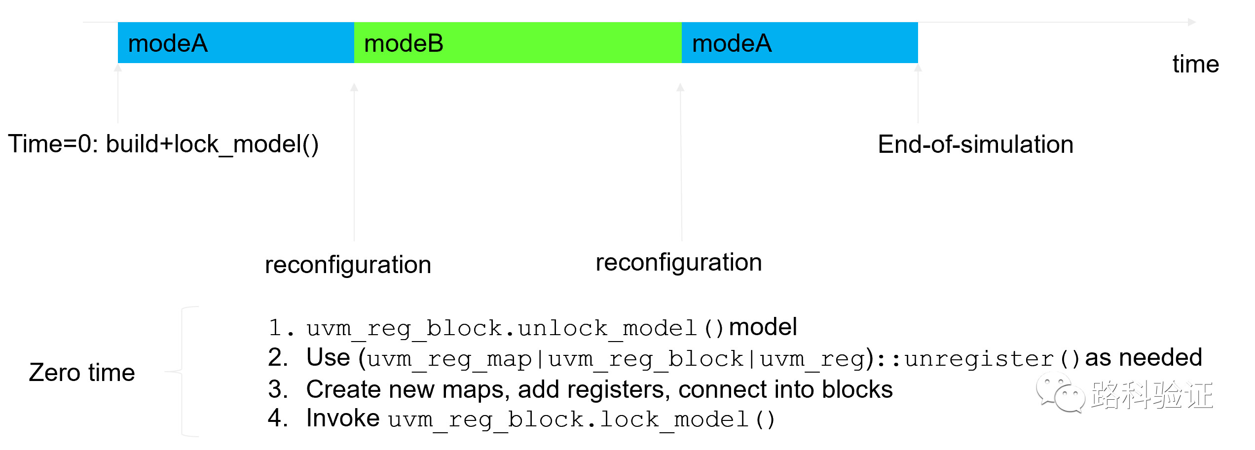 UVM-1800.2中,我们可以调用uvm_reg_block::unlock_model先来“解锁”,再uvm_reg_block::unregister()来卸载寄存器,完成这些动作以后,只需要重复添加寄存器的动作,再lock寄存器块就好了。