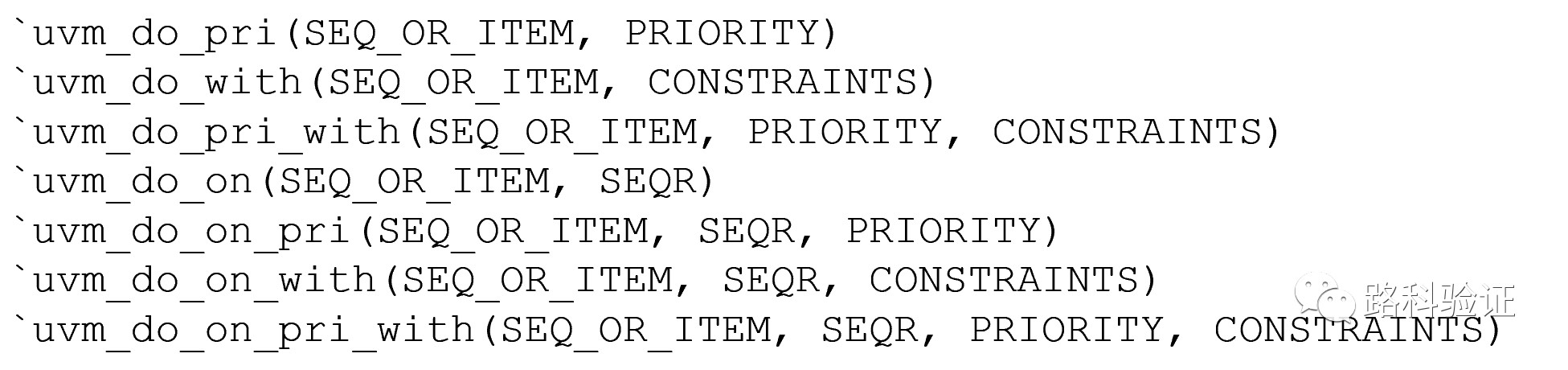 UVM-1800.2中,只需要`uvm_do()就足够了,因为用户可以为其添加其它参数(如果不使用缺省参数的话)。