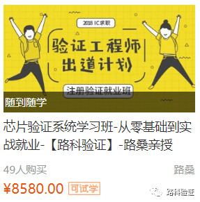 不知不觉课程已经上完了,在整个过程中能感到路桑老师的用心,在足够的技术实力支持下又能将教材由浅入深并且生动的讲解出来。课程涵盖了验证岗位中的各项基本技能,所以整个战线非常长,不仅对老师也对学生自己的要求有挑战。如果能有机会的话期待路桑老师继续开启进阶课程,希望以后能有机会有更多的交流!